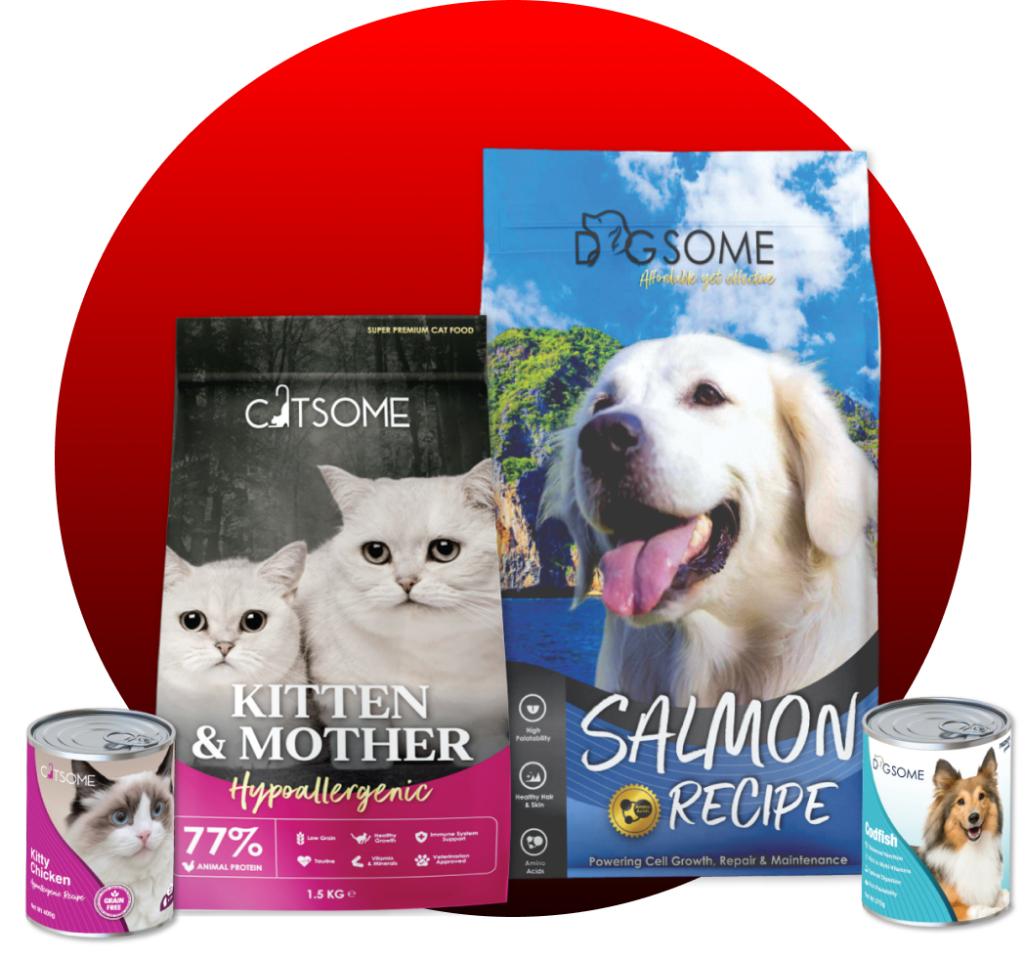 At Dogsome Catsome, we are dedicated to improving pets’ lives with high-quality nutrition. Our range of dog and cat food is thoughtfully crafted to meet diverse dietary needs. Every product reflects our commitment to combining exceptional quality with affordability, promoting health and happiness in every meal. Trust Dogsome Catsome to provide nourishment that supports your pet’s vitality and well-being at every stage of life.