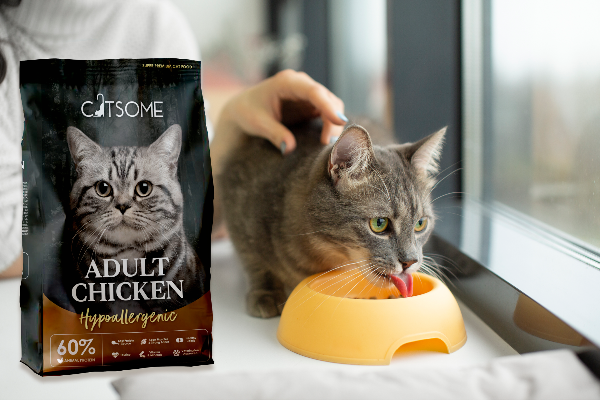 "Ever since switching to Catsome for my sensitive cat, I've noticed a dramatic improvement in her skin and fur."